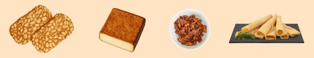 • Tempeh (ein fermentiertes Sojaprodukt mit nussigem Aroma und fester, leicht körniger Struktur)