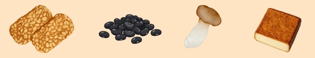 Über Umami und Röstaromen. Sojasauce, Miso, Hefeflocken, getrocknete Pilze und Tomatenmark sorgen für geschmackliche Tiefe, scharfes Anbraten die Röstaromen. Oft macht das mehr aus als der Fleischersatz selbst – und es funktioniert mit allen pflanzlichen Zutaten, von Tofu bis Hülsenfrüchten.