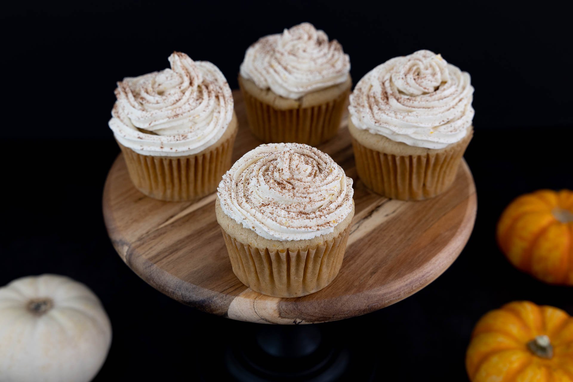Pumpkin Spice-Cupcakes dekorieren und vor dem Geniessen mindestens 1 Std in den Kühlschrank stellen