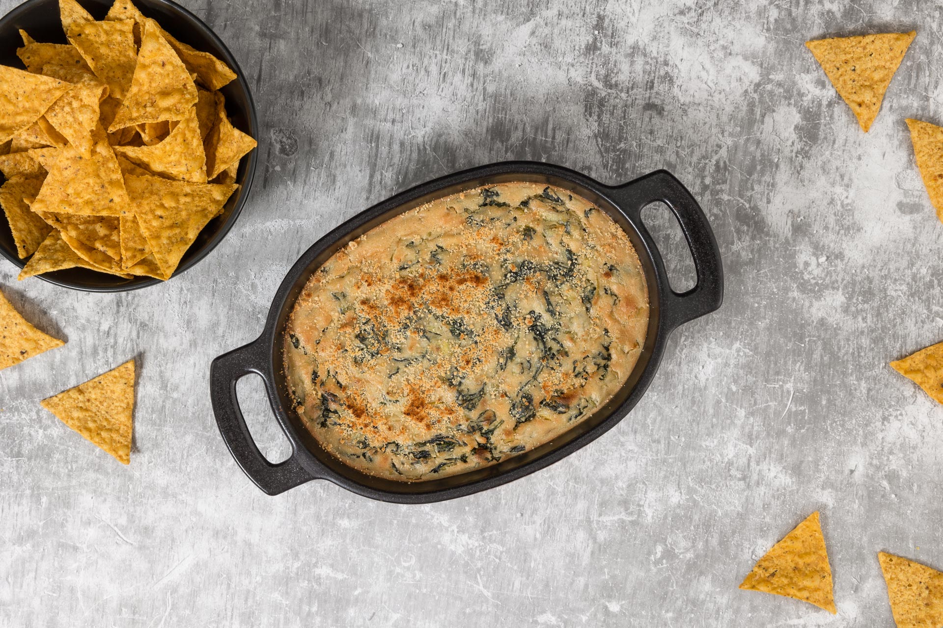Ob als Snack oder als Vorspeise, der Spinat-Artischocken-Dip ist in den USA ein Klassiker. Die vegane Variante überzeugt dank der Cashew-Käsesauce genauso wie das Original.