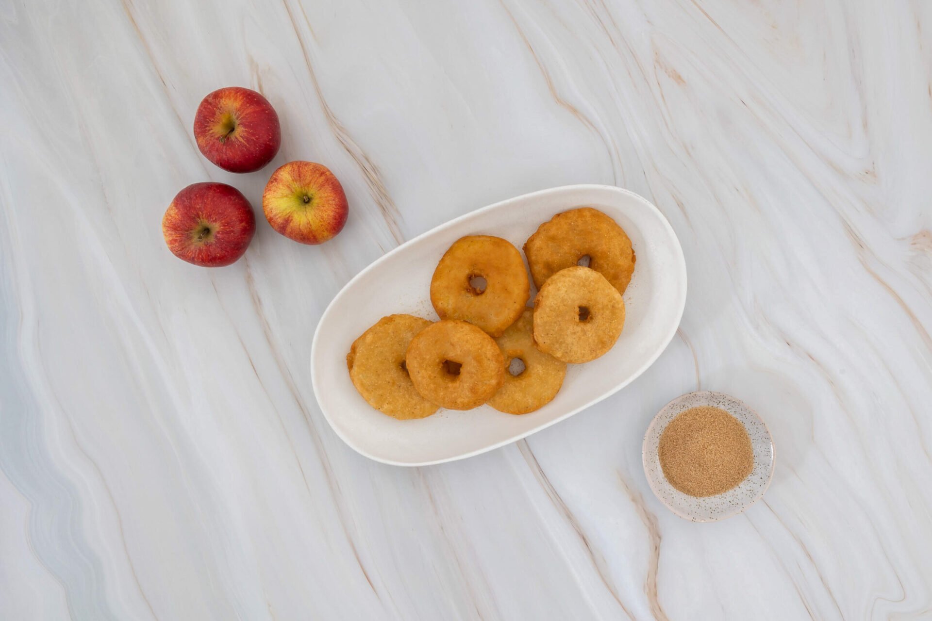 Apfelringe in Teig gehüllt, in Öl gebacken und mit Zimt und Zucker bestreut – so sieht der süsse Himmel aus. Mit diesem Rezept könnt ihr vegane Apfelküchlein ganz einfach selber machen.