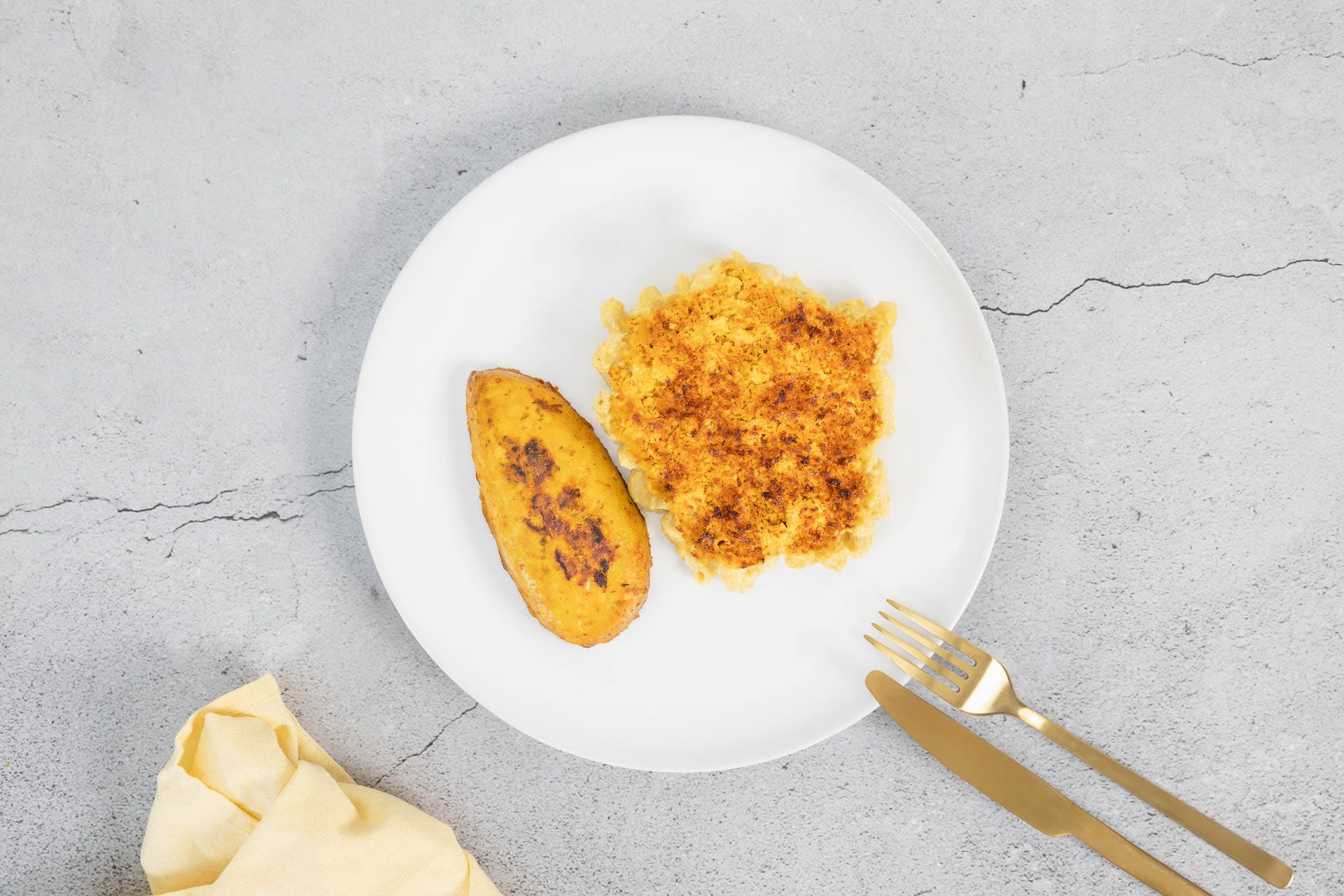 Mac and Cheese schmecken auch direkt aus der Pfanne. Zum Beispiel als schnelle Beilage zu einem pflanzlichen Schnitzel.