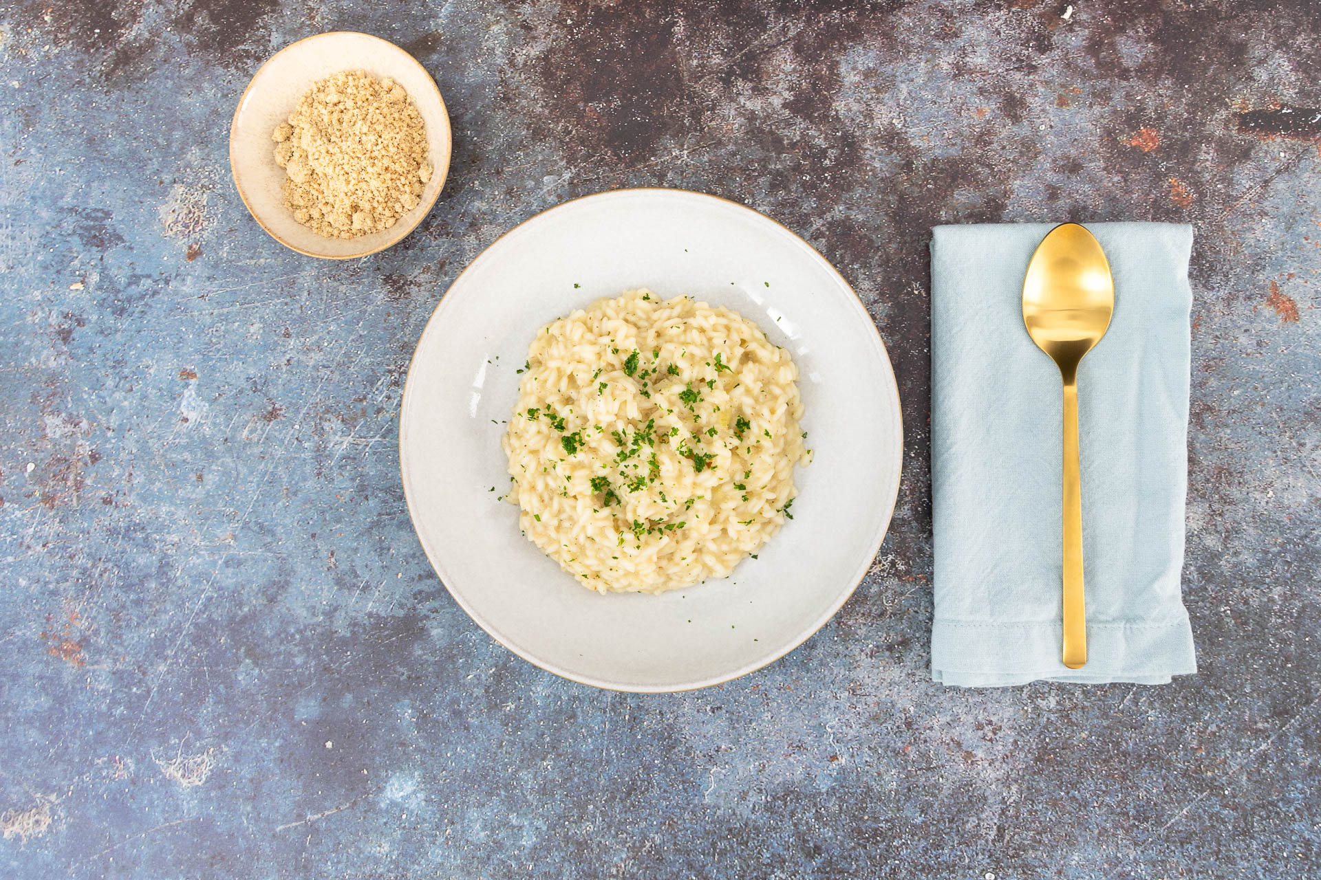 Wenn ihr keinen veganen Parmesan habt, könnt ihr auch 1-2 EL Hefeflocken ins Risotto geben oder in nur 5 Min welchen selber machen.