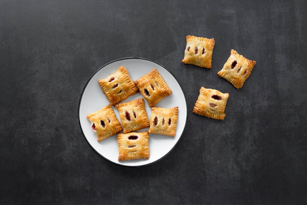 - Blätterteig in 8 gleich grosse Rechteck schneiden